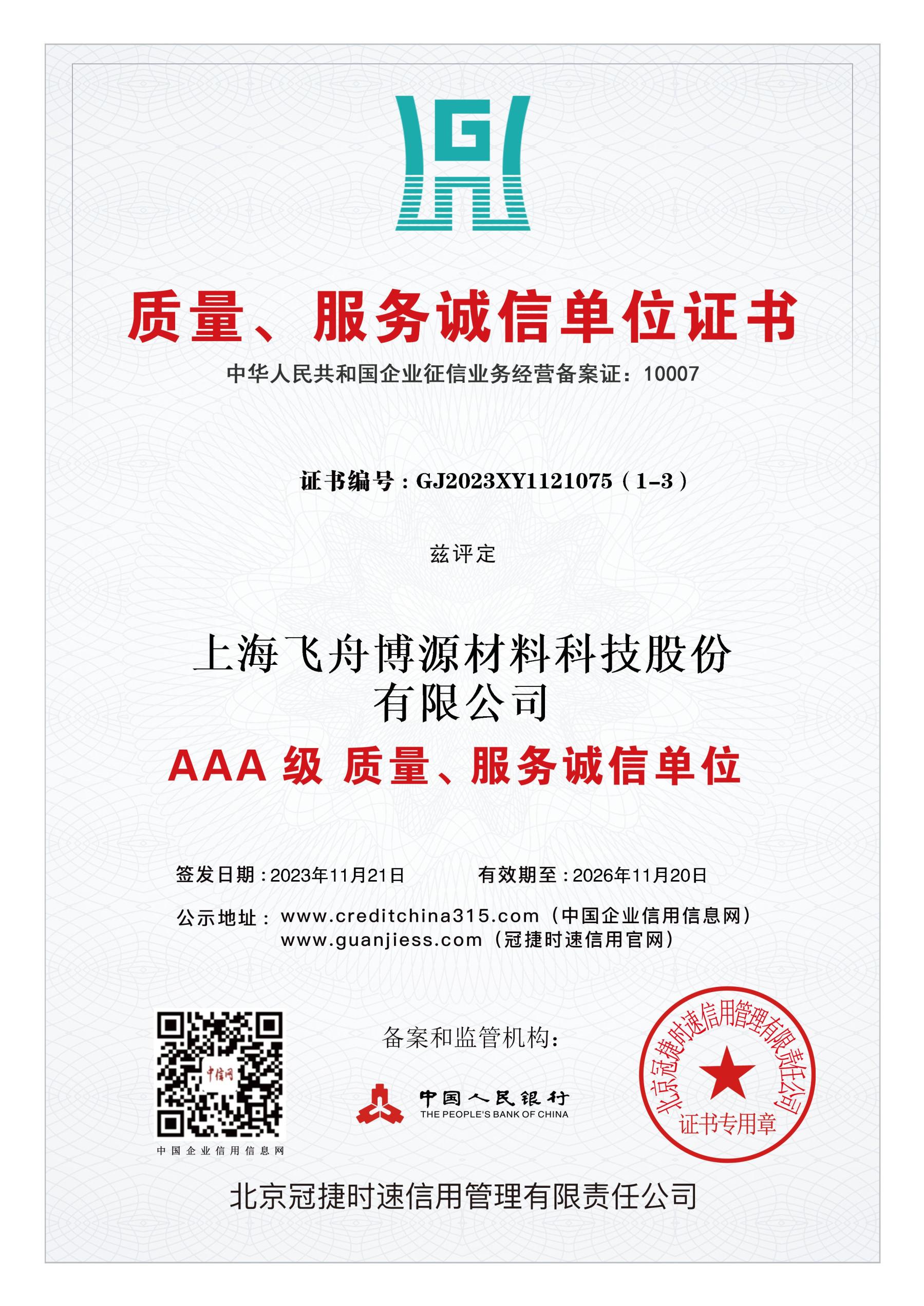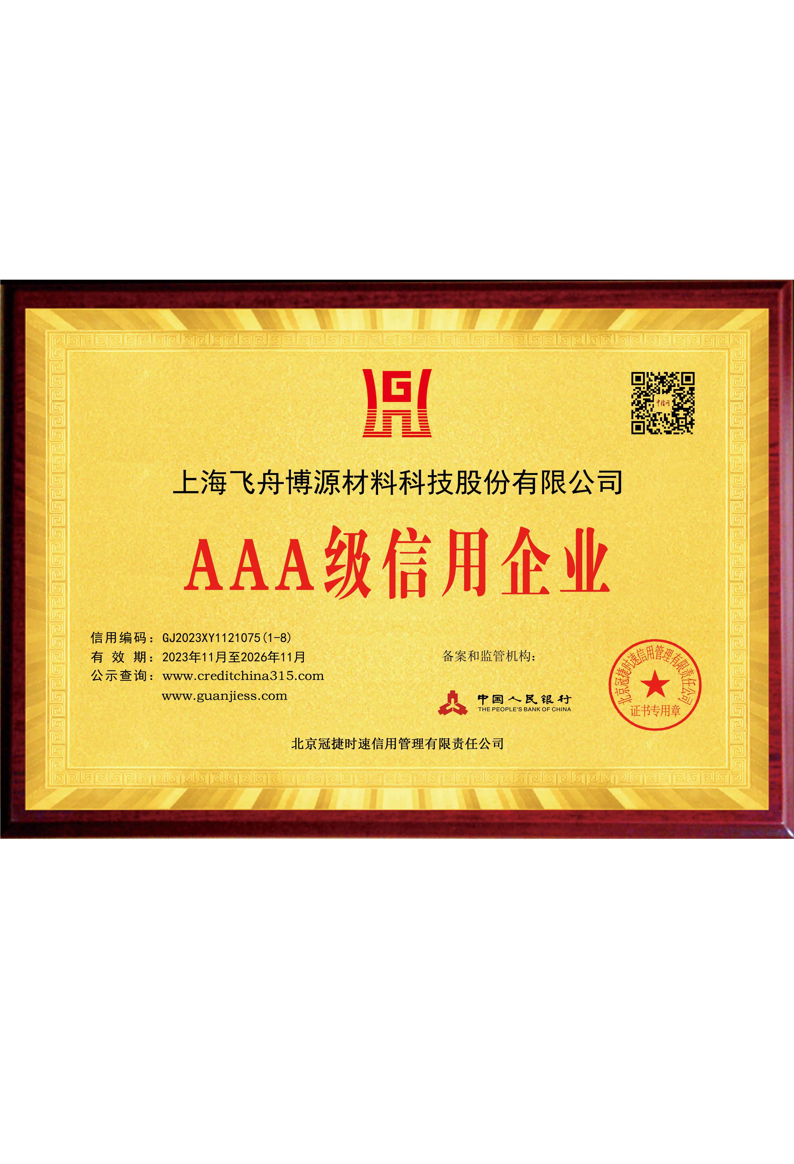 最高级别的企业信用评级,证明公司具有优秀的商业信誉和履约能力。